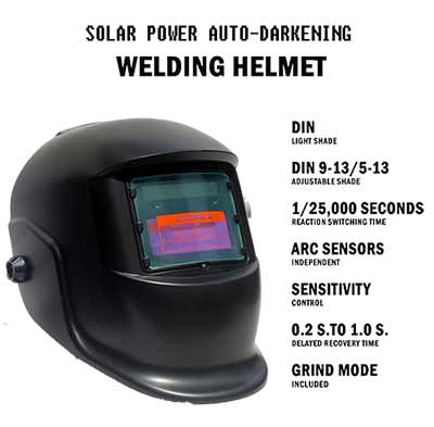 7.自动变暗头盔-自动变暗头盔上的传感器可以在几秒钟内使镜片变暗。所有自动变暗头盔都必须符合ANSI标准。工业头盔的反应速度为1/10000到1/20000秒,并可调节遮阳设置#9到#13焊接。工业头盔有一个可调的灵敏度,发现在低安培非常有用。它可以控制和调整镜头在电弧停止后保持黑暗的时间。